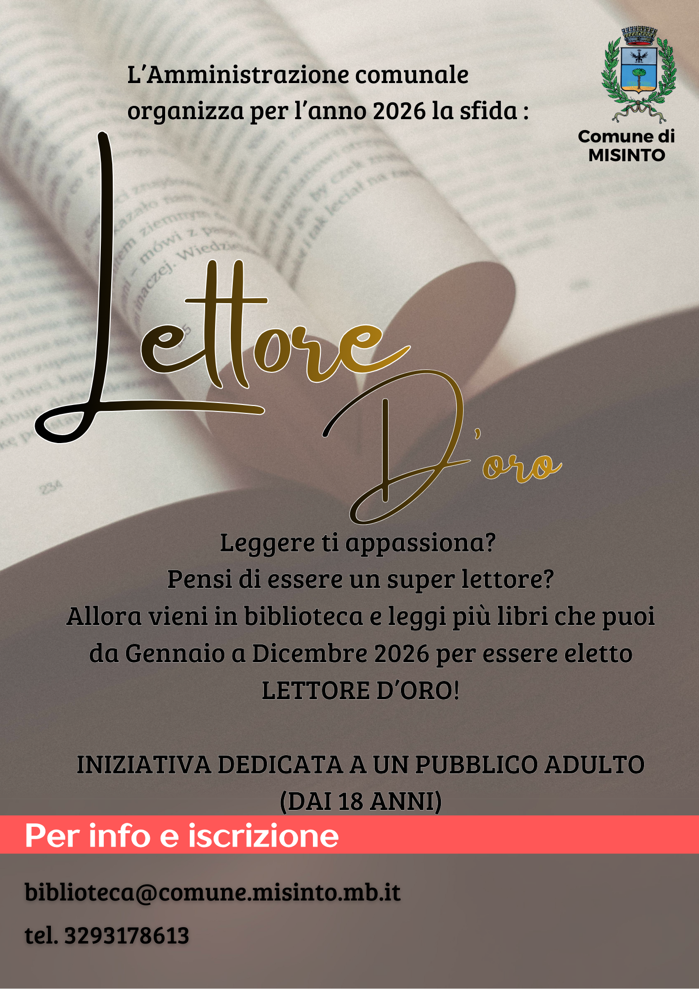 L'Amministrazione comunale in collaborazione con la biblioteca organizzano per l'anno 2026 una sfida che si concluderà a dicembre per la nomina di "Lettore d'oro".