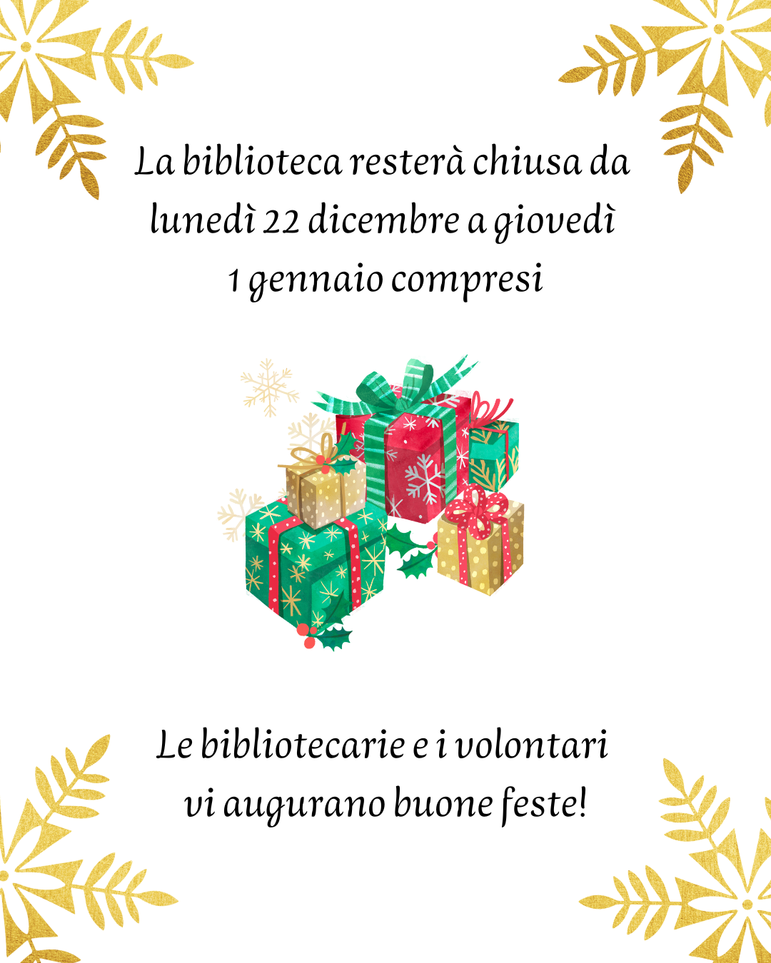 La Biblioteca riaprirà all'utenza a partire da venerdì 2 gennaio 2026.